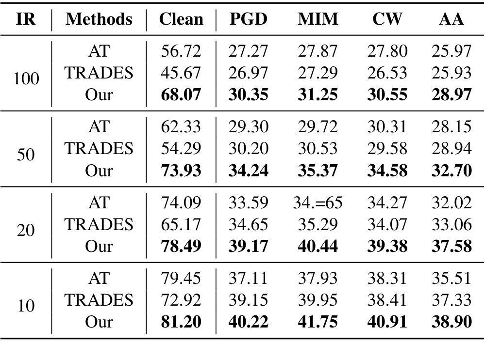 - 提出了SOTA的针对长尾分布的对抗鲁棒训练框架
